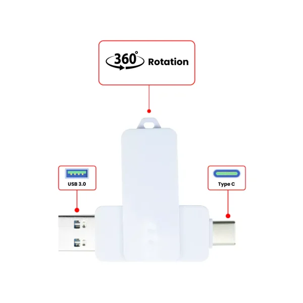 OTG White Swivel USB Flash Drives 64GB V. 3.0 Type C